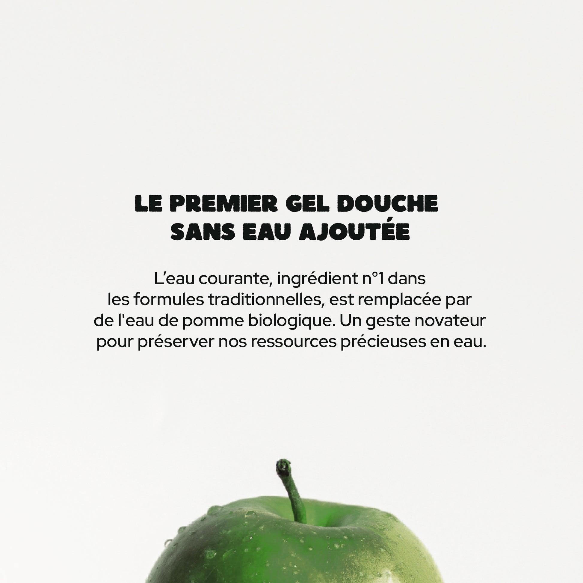 💦 Un produit sans eau ajoutée dans la formulation (Un gel douche traditionnel contient en moyenne 90% d'eau potable), sans eau nécessaire à l'utilisation.